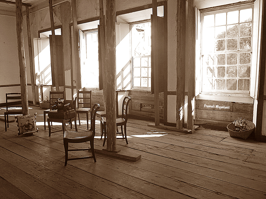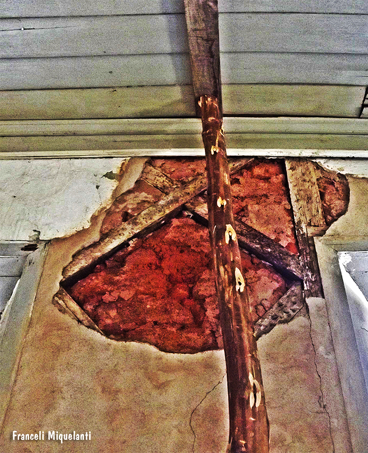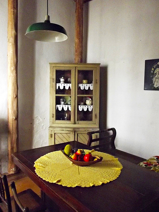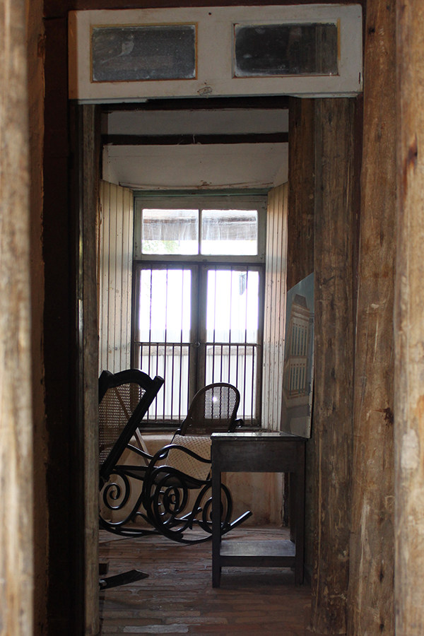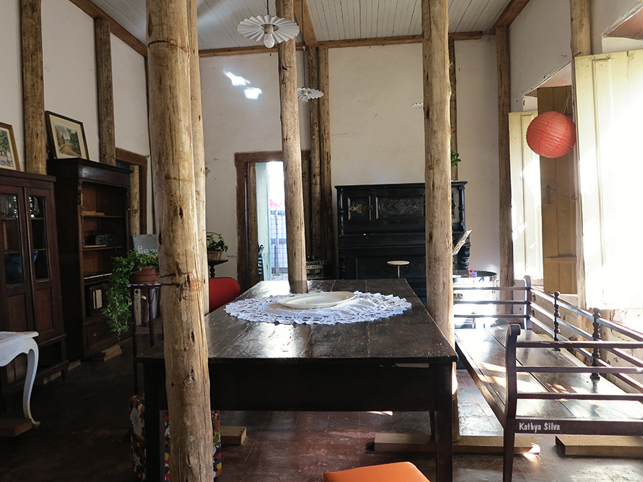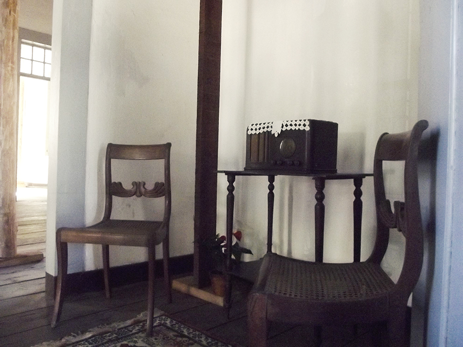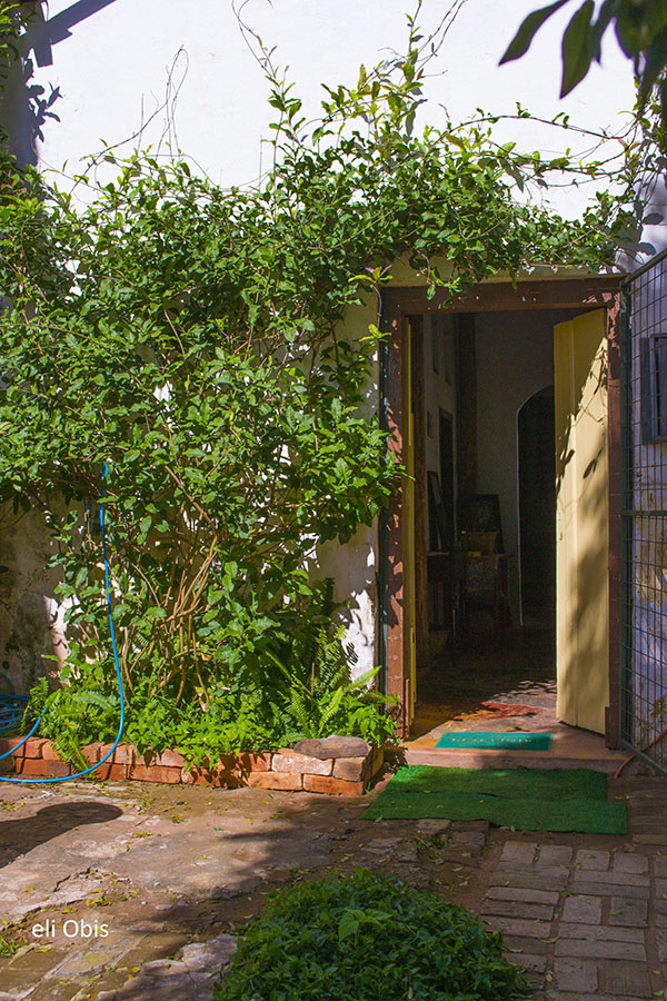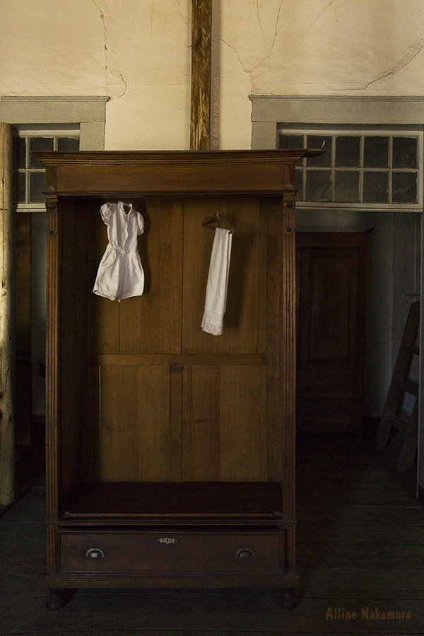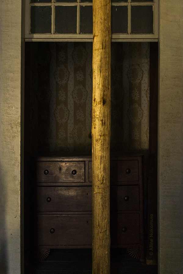 Cruza-se o jardim, e pela porta de entrada lateral, temporalidade e memória nos atravessam. Há quanto tempo as cadeiras de balanço não embalam costura, as roupas no armário, quais histórias vestiram? Qual teria sido a última música tocada no rádio da sala? Jogos de luz e sombra nos levam a investigar espaços, nossos olhos esmiuçando o que virá atrás da próxima porta. Os passos nos conduzem por um chão de nervuras de histórias. Nossas histórias. Cada registro do tempo nos convida a compor com eles nossas memórias. Nessa casa, luta e sonho se encontram e, através das janelas do alto, alcançamos as beiras da cidade. (texto de Isabela Vieira Bertho)